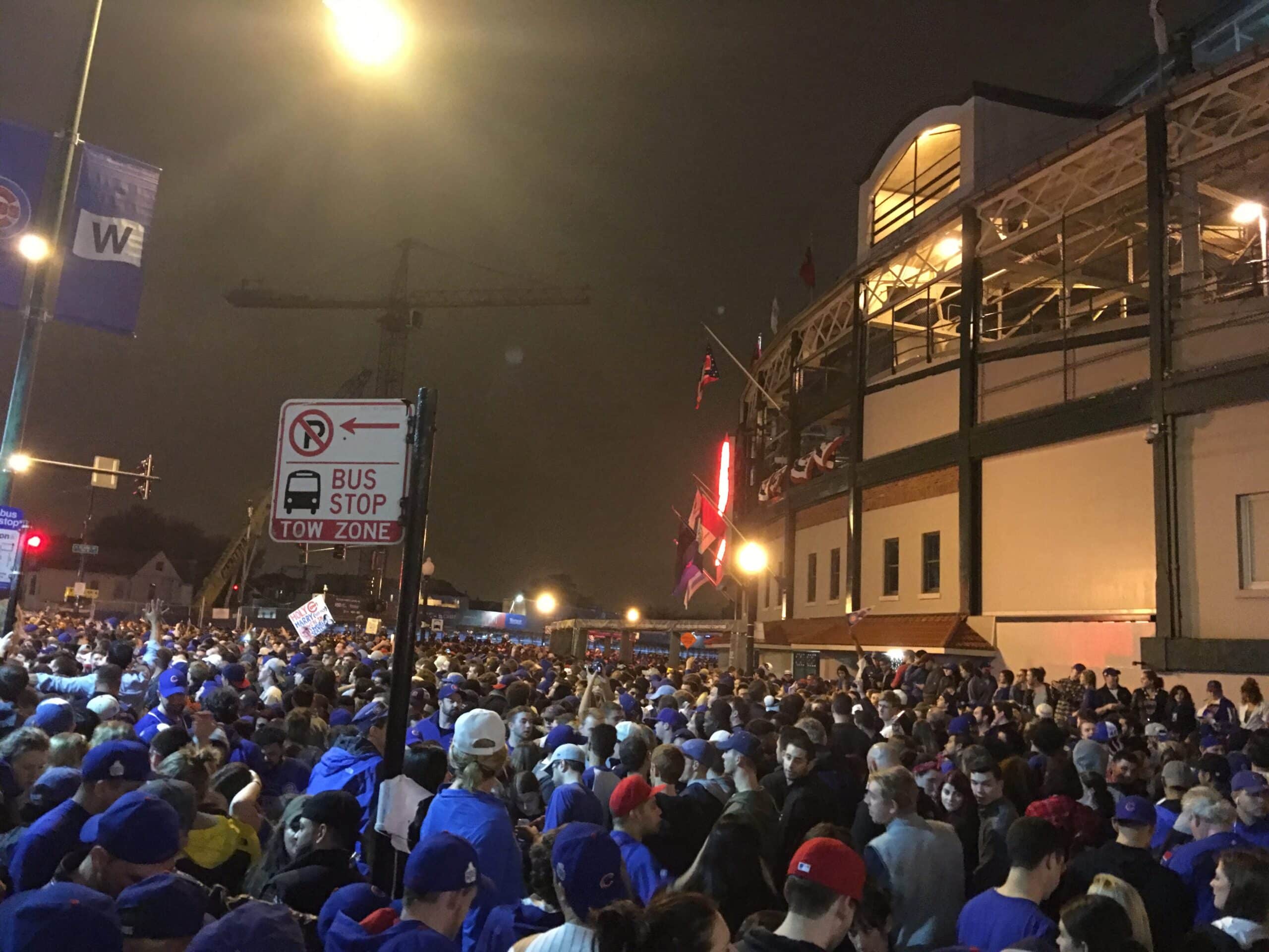 Game #7 for the World Series was actually held in Cleveland. By any means, Wrigley Field was still insane! As you can see from the picture. I came out here with friends to celebrate the end to a Cubs World Series drought. It was totally worth it, but was definitely a crazy moment for the history of Chicago.