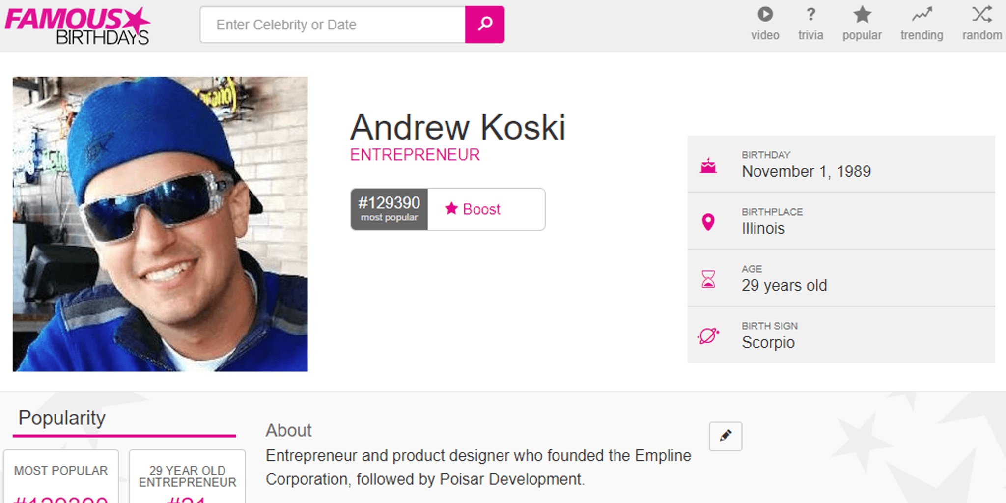 About Entrepreneur and product designer who founded the Empline Corporation, followed by Webanto. Before Fame He bypassed a double Masters in product design and patent law, electing to stay debt free and develop new products during his early 20's.